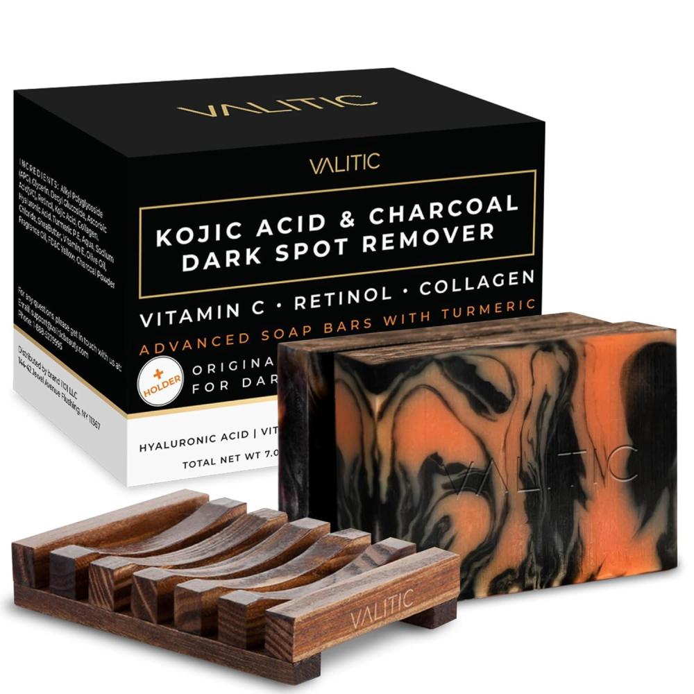 VALITIC Charcoal Kojic Acid Turmeric Black Soap Bar Dark Spot Remover for Body or Face Wash – 2 Pack(2 Pack + Holder)