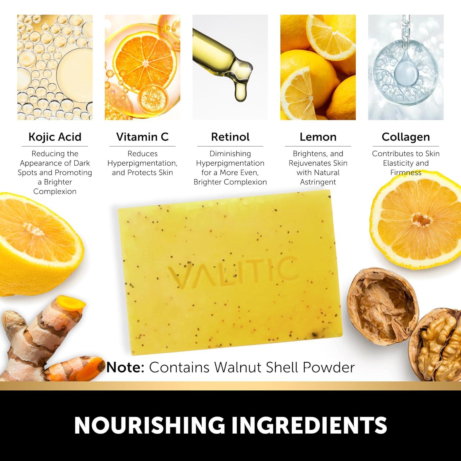 Harsh-Free Formula – The Valitic Lemon and Kojic Acid Brightening Soap is SLS and paraben-free, vegan and cruelty-free, cleansing without stripping natural oils to keep skin soft, moisturized and safe for daily use. Patch test before first use. Contains shell powder. For external use only