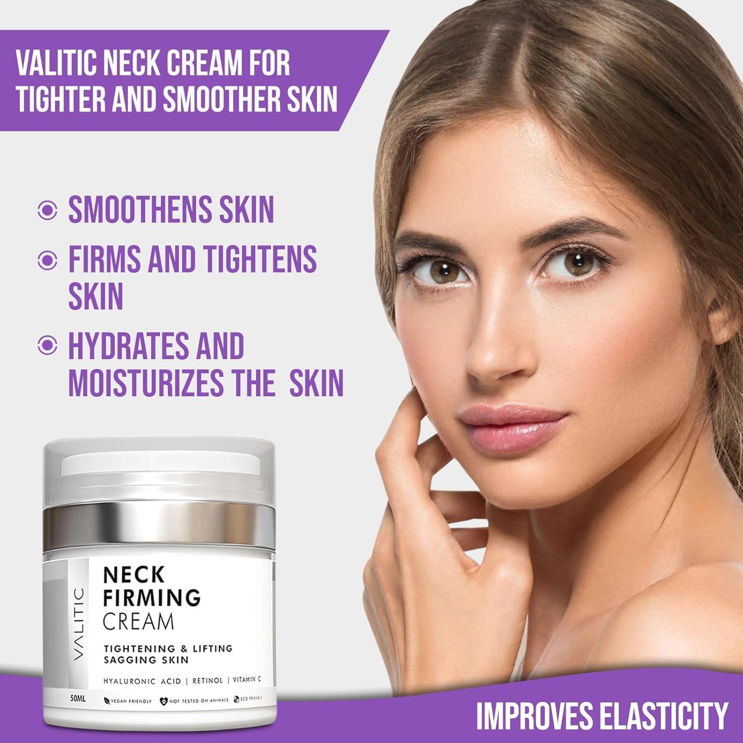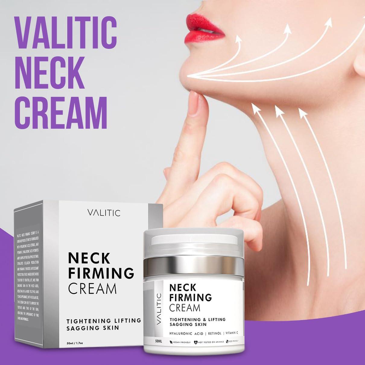 VALITIC Neck Cream for Tightening and Firming - Hyaluronic Acid, Retinol, and Vitamin C - Anti Aging Tightening & Lifting Sagging Skin Day and Night Cream