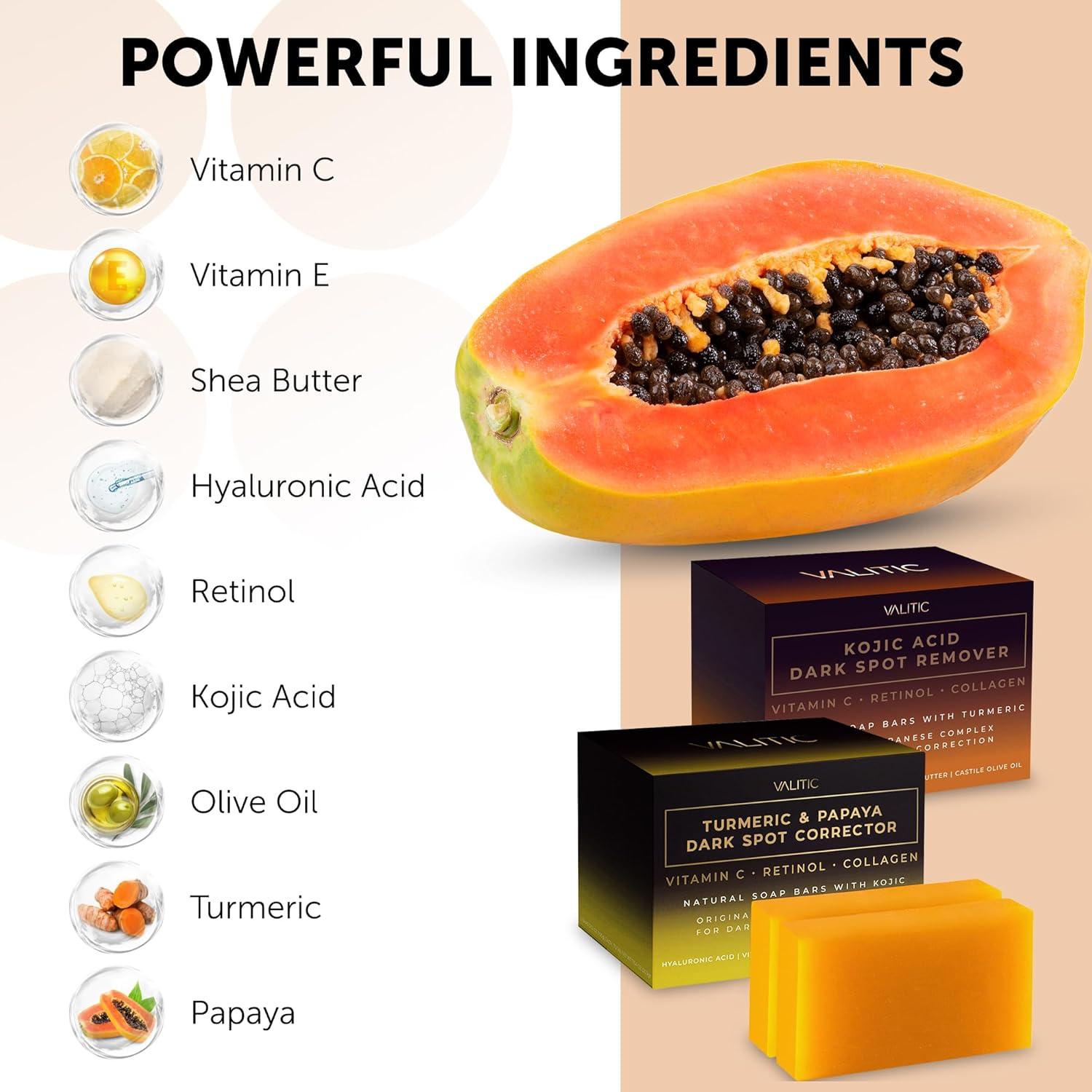 imageVALITIC Papaya and Turmeric Kojic Acid Soap Bar  Dark Spot Corrector Skin Care Cleansing Bar  Infused with Vitamin C Hyaluronic Acid Collagen Retinol Olive Oil  2 Pack2 Pack  2 Pack