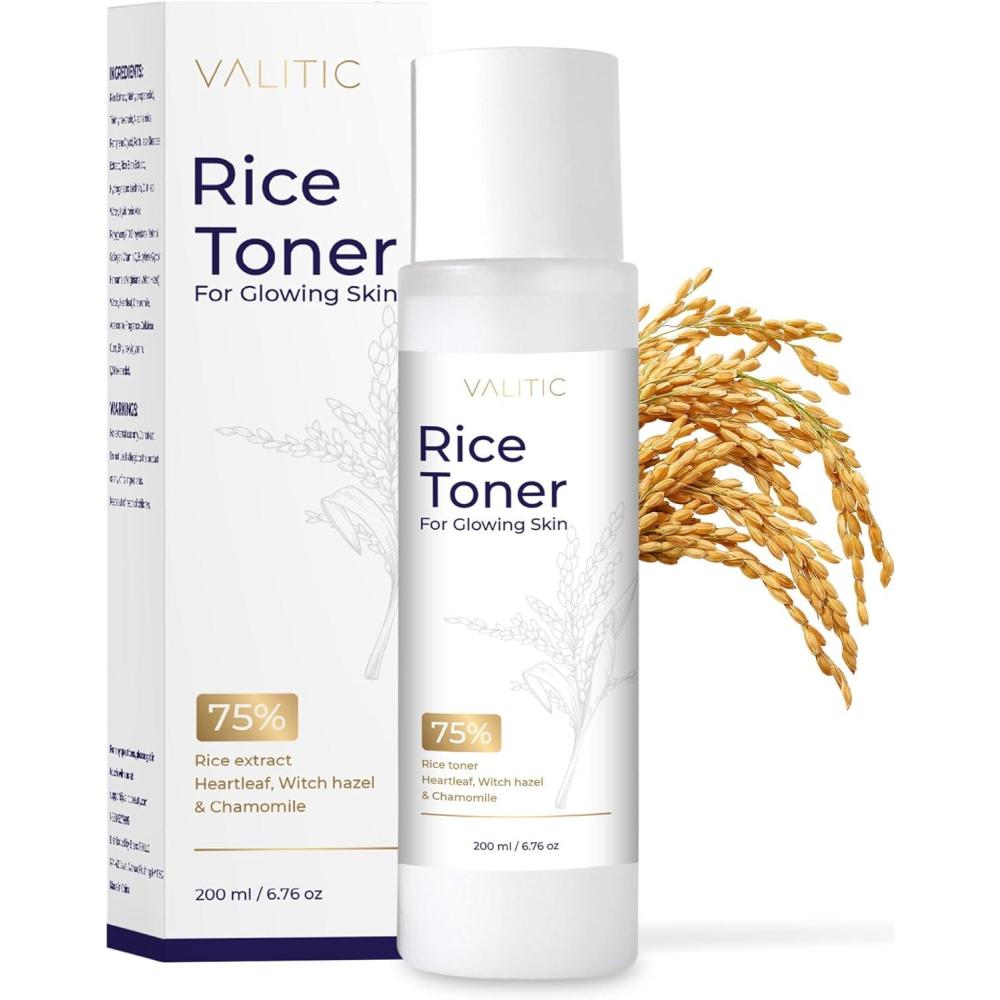 VALITIC Rice Toner – 75 Rice Extract Milky Toner for Face with Niacinamide, Heartleaf, Witch Hazel and Chamomile Essence – Facial Glass Skin Hydrating Skin Care – 200 ml, 6.76 fl oz